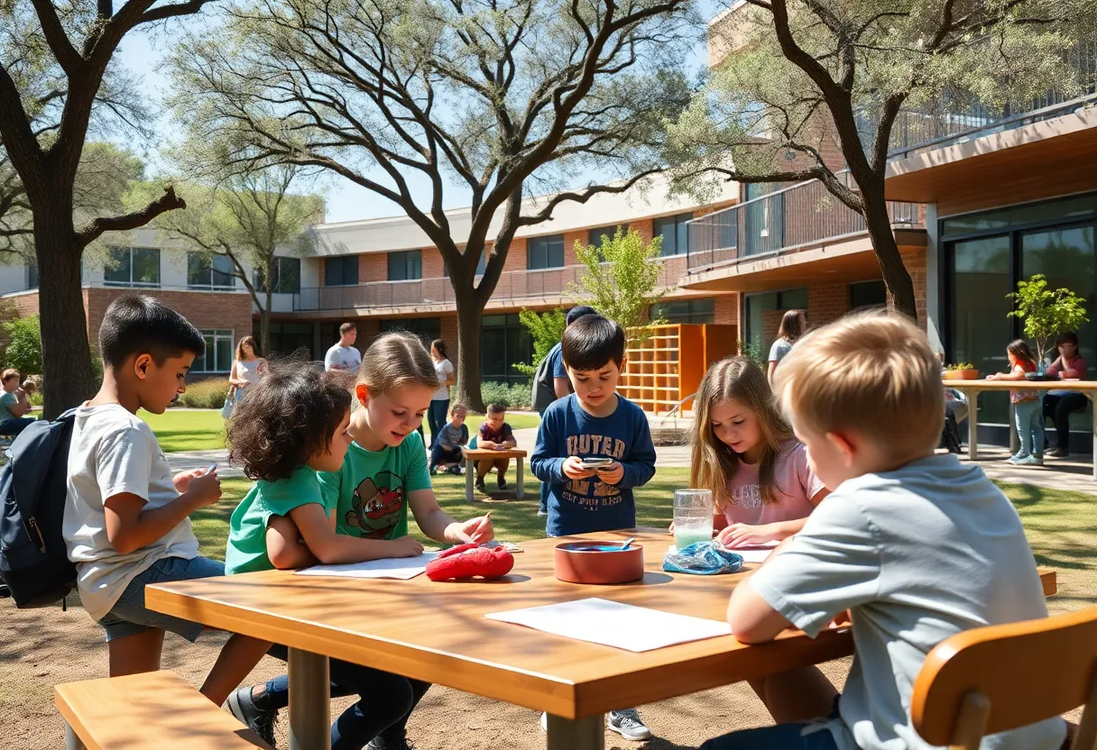 Students participating in outdoor learning at an Austin school