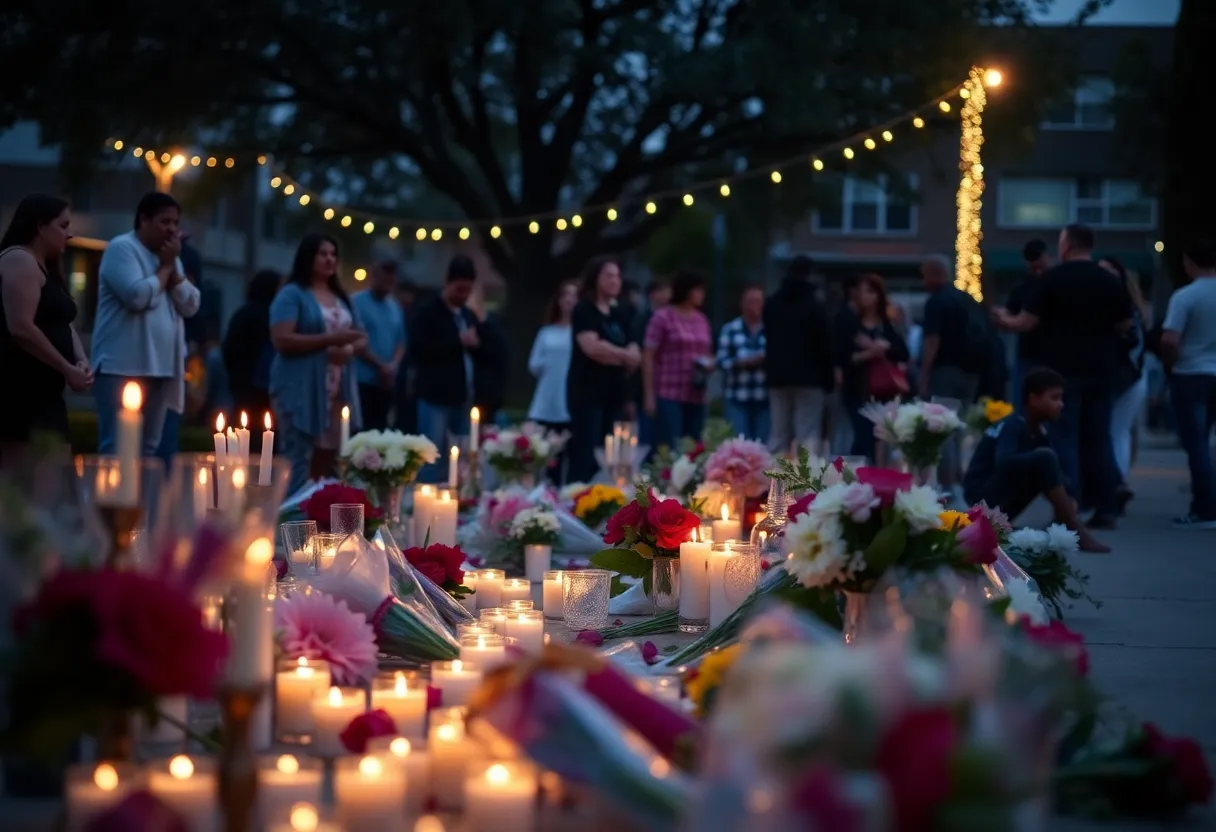 Community vigil in memory of Nicholas Taylor with candles and flowers