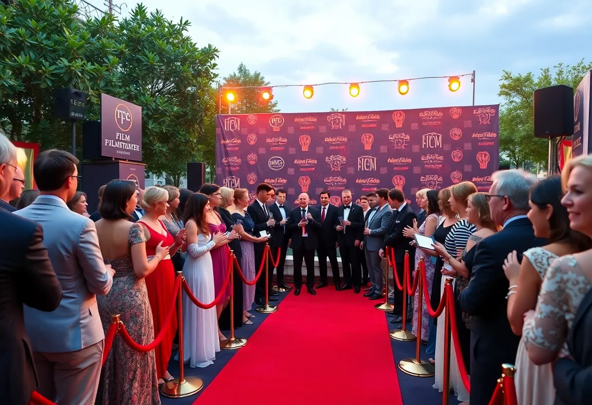 Red carpet at the Texas Film Awards showcasing attendees in formal wear.